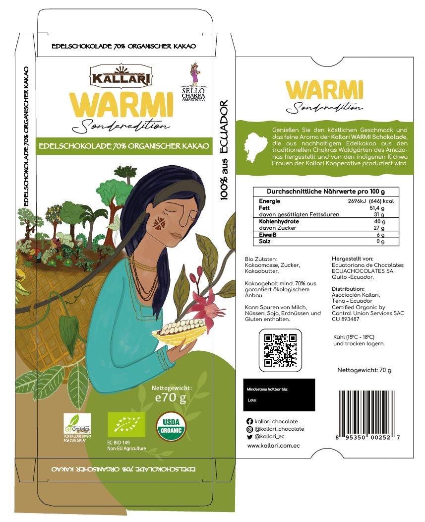 BIO Schokolade 70% KAKAO, KALLARI WARMI